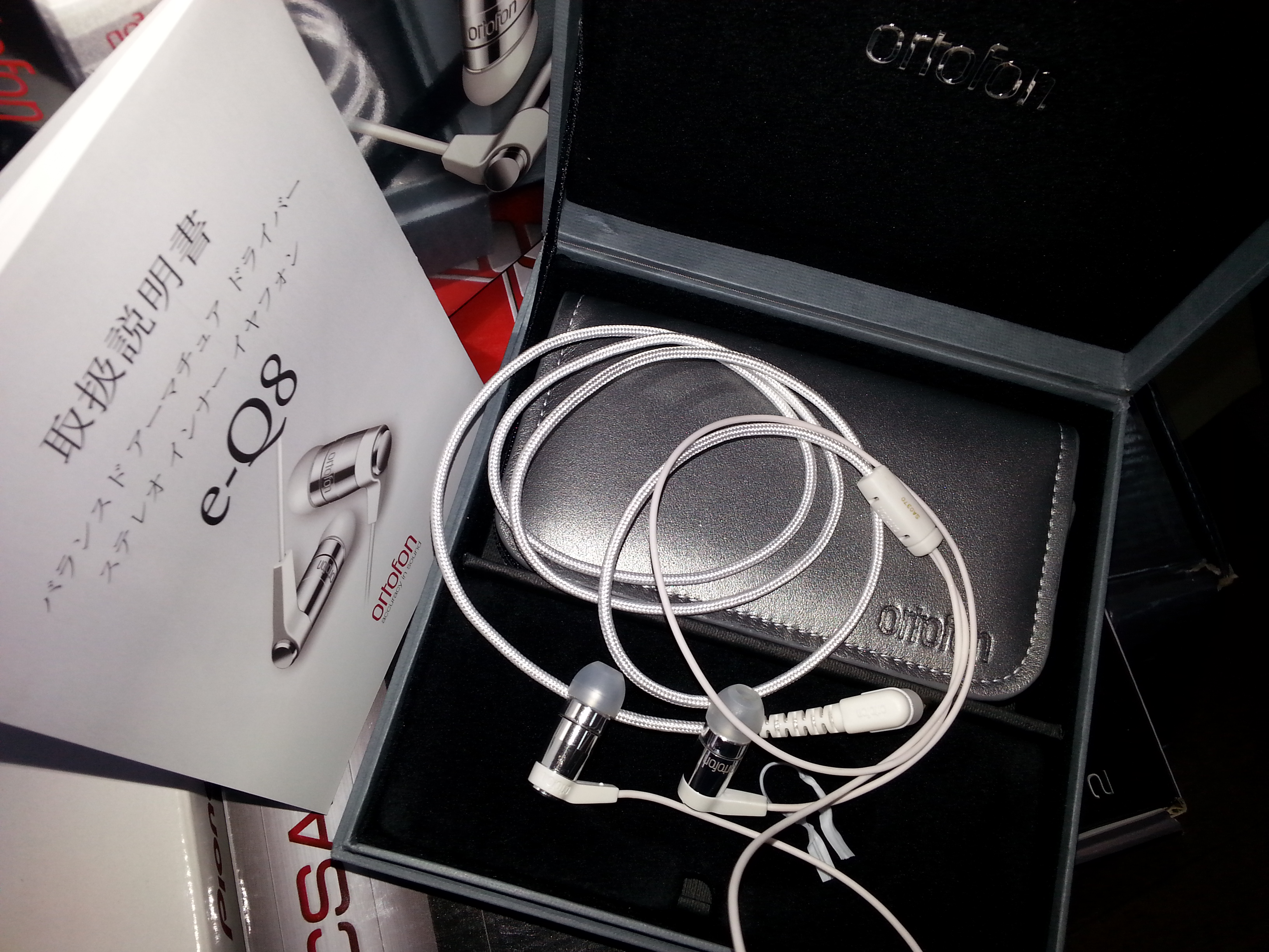 Технические характеристики: Balanced Armature - Pure Silver Coil Drum Frequency response:10~20,000Hz Sensitivity: 20mW Impedance: 12Ω Weight: 11.5g Cable: 1.2m, straight 3.5mm plug (Ф3.5mm) Accessories: 3 pairs of silicone ear tips (S/M/L), 1 pair of Comply foam tips, 4 replacement filters, 2 replacement filter rings, filter replacement tool Available colors: METAL Упаковка. Наушники пришли в красивой, глянцевой ,картонной коробке. Внутри очень красивый кейс серого цвета с черной бархатистой отделкой внутри и серебристой надписью "ortofon". В кейсе находятся сами наушники и чехол с аксессуарами. Все сделано очень красиво и аккуратно, как говорится "аж душа радуется!" Комплект * Наушники * Четыре пары силиконовых насадок * Одна пара пенных насадок * Инструмент для смены фильтров * Сменные фильтры и удерживающие их кольца * Чехол для переноски * Инструкция на английском и японском языках Внешний вид. Наушники выглядят очень красиво. В отличии от предыдущей модели e-Q7 (они были серебристые/черные/красные), e-Q8 выходят только в серебряном цвете. Сборка очень качественная, выглядят очень надежно. Кабель от наушников меняется после разветвителя. До него от разъёма изоляция напоминает плотную ткань, к самим же наушникам идёт гораздо более мягкий и гибкий провод. Судя по инструкции e-Q8 можно носить как классическим способом (кабелем вниз), так и заушно. У меня не возникло проблем с посадкой как заушной ,так и обычной, но в данном форм-факторе я привык к классической (вниз проводом) посадке. Штекер "Г" образный, с позолотой. Звук. Вот тут будет несколько сложнее описывать e-Q8, поскольку на разных источниках наушники ведут себя по разному. Но впечатление от прослушивания, сугубо положительные. В тесте участвовали: MyST PortaDAC 1866OCUB, Fiio X3 (модифицированный SanMigel), HiFiMan HM601 (еще старой редакции "fat" с firmware 0,05), SanDisk Sansa Clip+ (rockbox by gemzza) и стационарный MyST DAC 1866OCU V.2. Самый лучший результат Ortofon e-Q8 показали на MyST DAC 1866OCU V.2 и MyST PortaDAC 1866OCUB, что говорит о том, что наушники, для полного раскрытия требуют хороший тракт. Звучание я бы обозначил как сухое, чистое, аналитичное, с хорошим панчем, даже в каком то смысле мониторное. Наушники очень быстрые с довольно широким динамическим диапазоном. Тональный баланс довольно ровный. Вообще, я обожаю такой звук! Ничего не выпирает, слышны все нюансы композиции и при этом в отличии от многих внутриканальных наушников на базе арматурного излучателя, да и не только, музыка подается цельно, крупными мазками, e-Q8 "не мельчат" и в тоже время каждый инструмент/звук в пространстве хорошо очерчен и телесен. Кое где проскакивают сибилянты, но они не напряжны и не мешают прослушиванию музыки. Вч четкие, точные и только на плохих записях немного рассыпчаты. Воображаемая сцена, довольно широка. Бас быстрый, упругий, хлесткий. Очень редко можно встретить у однодрайверной арматуры подобные НЧ. Еще меня порадовал очень плотный, четкий удар бас бочки, класс! середина очень информативна, все ровненько, ничего не раздражает, слышны все нюансы композиции. "Из коробки" была некоторая резкость на верхней середине, но спустя несколько дней она пропала. Я не очень склонен верить в прогрев арматурного излучателя, но тем не менее это так. Последний альбом Chrissie Hynde - "Stockholm" в связке MyST PortaDAC 1866OCUB + Ortofon e-Q8, ввело меня в состояние эйфории!!! На HiFiMan HM601 все было несколько по иному. бас немного отодвинулся назад, появились резкие нотки, вч стали более рассыпчаты, но подача стала более музыкальной. Fiio X3 (SanMigel Mod) наоборот, сухой, плотн