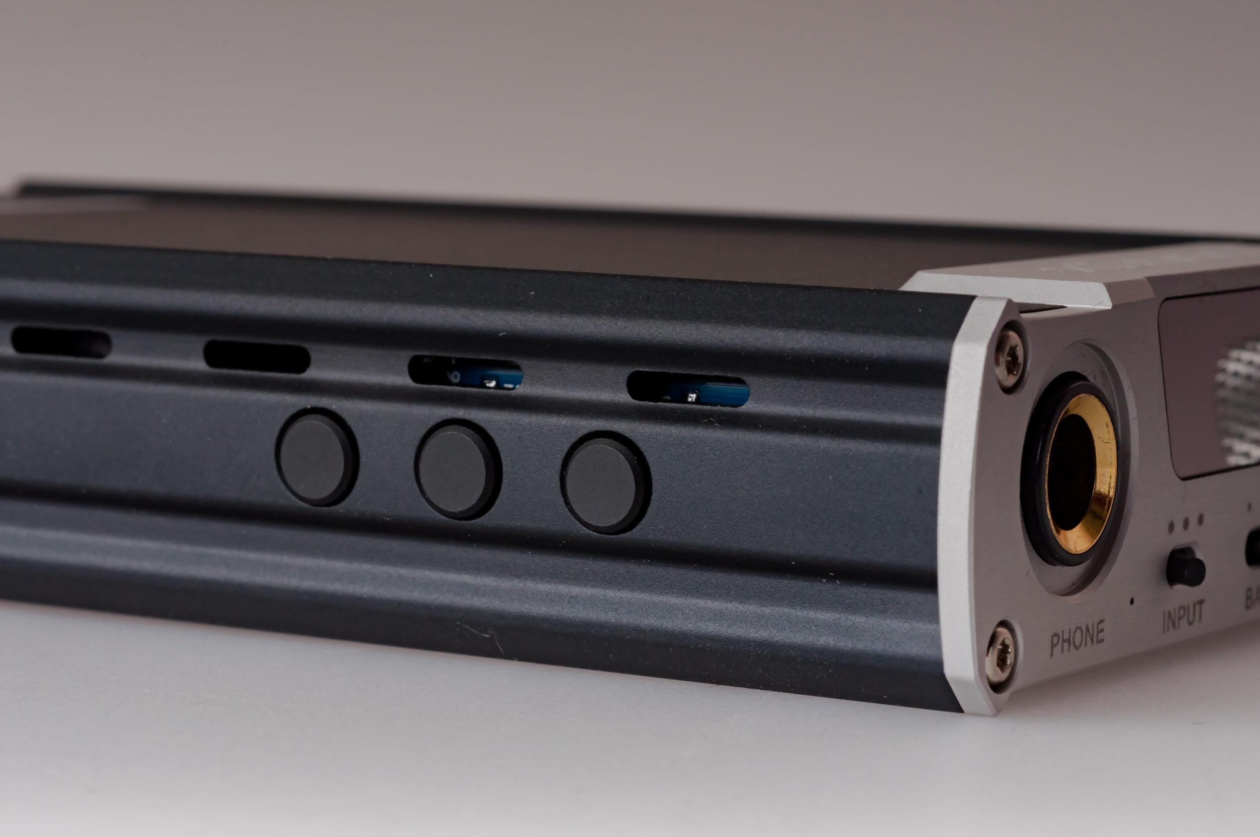 http://mycroft.su/ru/catalog/cifroanalogov...teli/xduoo_xd05 http://rom.today/albums/xduoo-xd-05/ А вообще - очень приятная во всех смыслах машинка! Пафоса нет, но аккуратность и серьезность в дизайне и сборке присутствуют. Размер оптимален. не большой но и не настолько мал, чтоб упираться в то, на чем бы в звуке сэконоомить. Пока не понял, нафига обычный утинный клюв на задней панели, а читать лень. Позже узнаю. Долго писать не хочу, так что коротко. Поставил на самый низкий уровень усиления но при этом Izo-30S и вполне тянет. Даже более чем вполне. Выше ставить не стал - на вч появляется, как мне кажется небольшой избыток резкости. Впрочем поклясться в этом не могу, так как время от времени этот эффект то исчезает то появляется в зависимости от мелодии. Может мне вообще показалось. "Порадовало" наличие SRC. Правда толку от него.... даже на хай-резах лучше звучит вариант 16\44. Ну в каком смысле "лучше". Менее "вальяжно" с большей агрессией там где музыка агрессивная, и меньше "вялости". Хотя любителя "воздуха явно порадуются" - влияние SRC весьма заметно, но в то же время аккуратно. А вот на что влияет Filter на слух определить пока не удалось. В целом звук аккуратен, плотен, имеет приличный "вес". В смысле нет ощущения что звук осветленный, со слабыми низами, как весьма часто бывает в недорогих дельтах. Да и в дорогих тоже. Если какие-то грязь и искажения на вч и есть, то почти не заметно и аккуратно вшито в общую манеру аппарата. И существенно заметно будет в основном на чем-то воде высокочувствительной арматуры или на несколько резких наушниках. В-общем приличный аппаратик, без броских недостатков и с ощитимыми достоинствами. -------------------- |