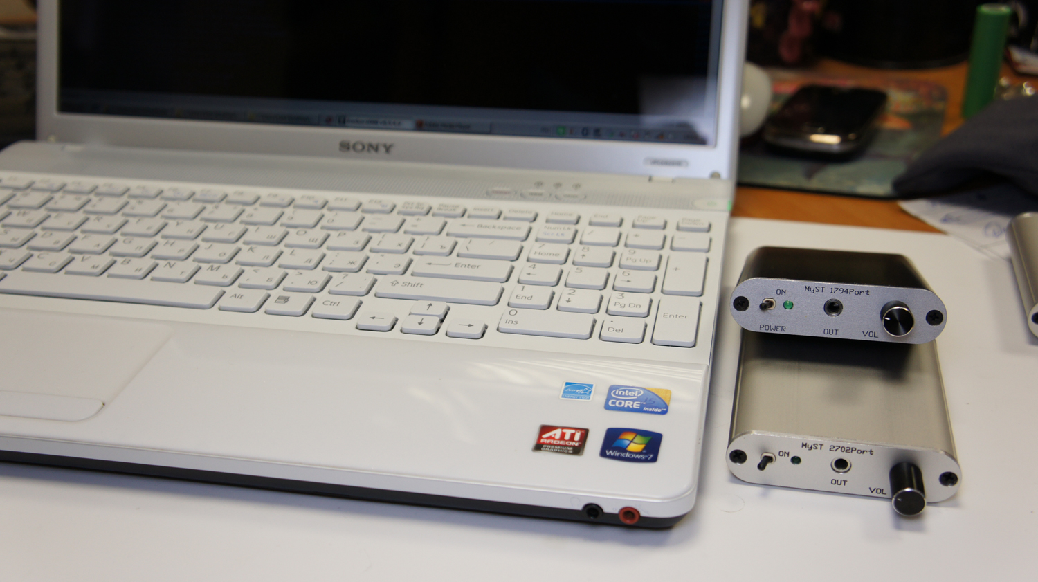 Прилетел ЦАП ко мне через три дня после оплаты, то есть весьма оперативно. До этого я долго мучал Романа по аське многочисленными и разнообразными вопросами касательно звучания, входов/выходов и т.п., на которые он вполне доступно отвечал. За что ему отдельная благодарность. Теперь непосредственно об аппарате. Впервые увидев его, я был сильно удивлён: устройство миниатюрное, размером что-то вроде портсигара или бокса для HDD. Подключив к USB порту и усилку, был удивлён ещё больше. Тракта для прослушивания и тестирования использовалось три: 1) ноутбук → PortaDac 1794u → наушники Sennheiser HD 435 (к этому ЦАПу нужны, конечно, получше, но у меня нету); 2) стационарный комп → линейный выход PortaDac 1794u → интегральный усилитель NAD C355BEE → напольные ас Heco Concerto f15; 3) стационарный комп → линейный выход PortaDac 1794u → интегральный усилитель NAD C355BEE → наушники Sennheiser HD 435. Второй вариант мне понравился больше всех. Пожалуй, это лучший звук, который можно получить с моего компа. Вариант №3 оказался интереснее, чем №1, хотя, если честно, ноутбук тоже теперь «звучит» как заправский хайфайный CD-проигрыватель. (Замечание в скобках: несмотря на негатив Романа по поводу маркетинговости волшебной формулы 24/96, всё же очень хотелось послушать аудио материал в этом формате, тем более что на компутере было кой-чаво ;-). К сожалению, по ASIO и WASAPI вывести 96 КГц foobar2000 не смог, максимум — 48. Зато по DirectStream почему-то смог) (Ещё замечание: ЦАП кино показывает, в смысле озвучивает, в играх и музыкальных программах работает, короче, мультимедия полная) Думал составить отзыв из впечатлений от прослушивания любимых композиций, а потом прикинул, что получается какой-то журнал об аудио аппаратуре: тарелочки-де воздушные, гитары убедительные, контрабасы вкрадчивые и прочее. На самом деле, если ты не совсем глухой, разницу между встроенной звуковухой и ЦАПом от MyST заметишь, не открывая глаз и закрыв уши. Совершенно другая детальность, прозрачность, чистота звука. Другой уровень. Я, например, никогда не слышал фоновый металлический призвук в начале «My Plague» Slipknot. Не скажу, что это крайне важно, но, оказывается, он есть. И мало ли чего ещё там есть, что я даже не представлял раньше. Вступление к «Birth of Venus Illegitima» Therion — это вообще шикарная вещь. Если акустический тракт не может правильно подать этот перезвон по тарелочкам, нафиг нужен этот тракт. 1794u справляется. И с вокалом справляется без напрягов. Например, «Heretique» Tristania с чистым мужским вокалом на фоне тяжёлого готического металла — безумная красота. Да тот же Therion. Или Nightwish. Вкуснятина. Чем меня поразил ЦАП, так это чётким разделением инструментов: все они на своих местах и друг друга не забивают. Бас на фоне, но его слышно, бочка где-то внизу и физически отдаётся в ушах, гитары/синтезаторы/рояли-пиванины/оркестр/хор — слышно всё. В этом плане концерты рокеров с симфоническими оркестрами слушать очень интересно. Небольшое замечание (не знаю, минус это или плюс): ЦАП честно отыгрывает всю входящую информацию, поэтому стоит обращать внимание на качество исходного аудио материала. К примеру, акустический концертник Seether (One Cold Night) перегружен «посудой», к тому же там присутствует какой-то фоновый шум навроде усилительного. В наушниках с ЦАПового усилка слушать тяжеловато. Хотя через NAD/Heco не так страшно (наверное, сказывается большее расстояние от динамиков). Оченно мн