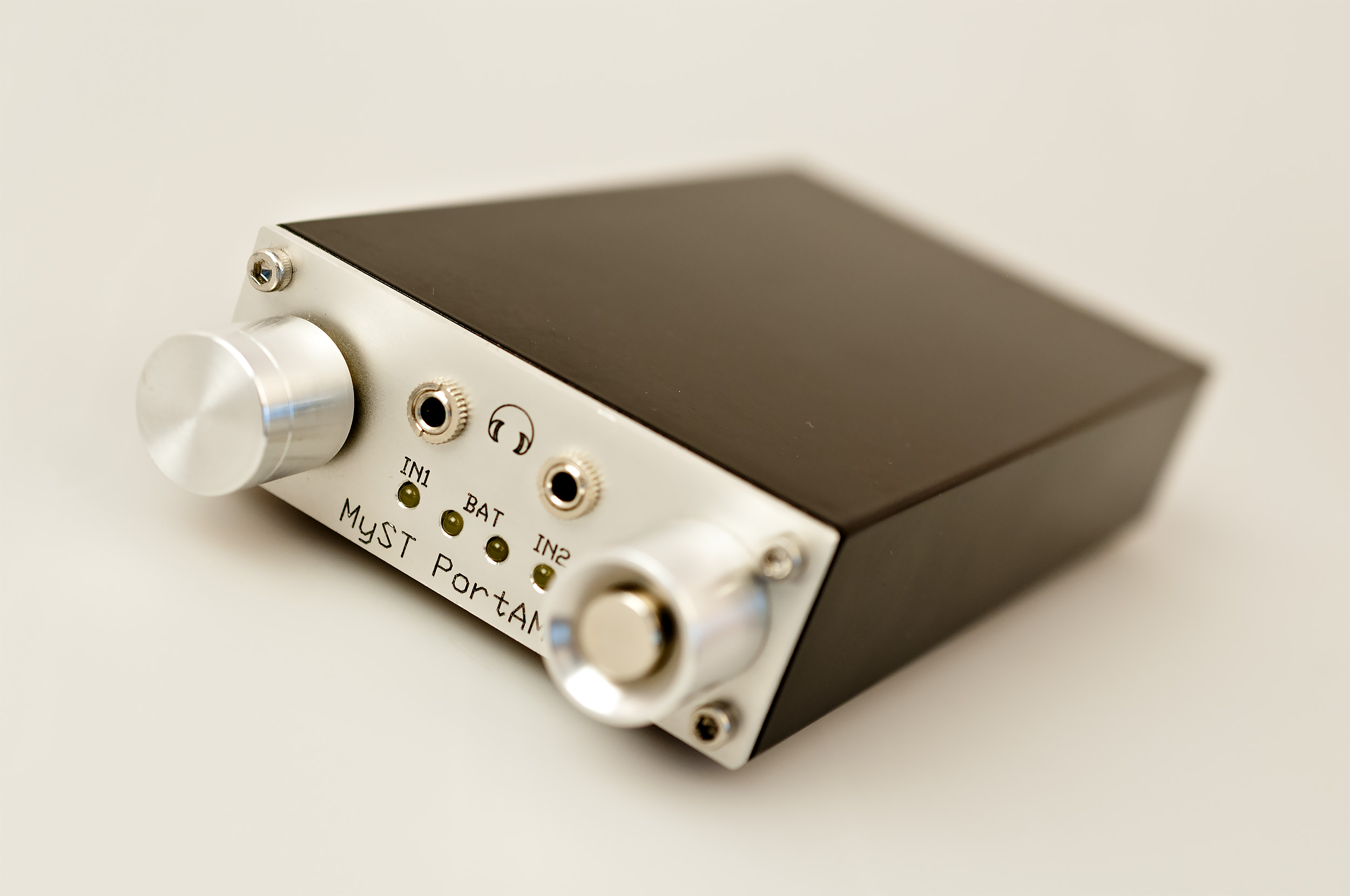 Ну что, вот и мне посчастливилось стать обладателем усилителя MyST PortAMP-II. Штука я вам скажу очень интересная. Хоть портативность в случае с PortAMP-II отностиельная, поскольку таскать с собой в кармане, да что там в кармане, даже в сумке, почти 600 грамм, это сильно. Но с другой стороны, устройство запросто можно взять с собой в поездку куда либо, таскать по хате, в офис и т.д. Мне, к примеру, очень нравится перед сном упасть "нАспину" и поваляться перед сном один на один с музыкой, при этом ни кому не мешая. Вот тут наш усилитель ни чем не заменим. Мощи у этой коробочки достаточно, он довольно компактен и имеет достаточно продолжительный жизненный цикл от аккумулятора. Экстерьер. Что бы там кто не говорил, а мне, как заядлому МиСТ'оману, по душе внешний вид продуктов Романа. Я, знаете ли, хоть и "эстет", но люблю эдакую брутальность и индустриальность , так сказать, продуктов компании МиСТ. Такс, что у нас тут спереди? А спереди у нас расположены: регулятор громкости (регулятор/энкодер Никитина на 128 положений), который так же служит как переключатель м/д входами. Два выхода на на наушники (под 3,5 джек) и 4 светодиода. Два светодиода показывают какой из 2х входов работает на данный момент, при переключении которое осуществляется нажатием на энкодер. Остальные два диода показывают нам, когда сабж выключен, при зарядке от сети, уровень заряда батареи. А поскольку в Портампе аккумулятора два (2 х 18650), то соответственно и каждый диод отвечает за отображение уровня заряда каждого из них (если я, конечно не ошибаюсь). Когда усилитель "под завяз", диоды гаснут и он как-бэ спит...))) Да, зарядка осуществляется внешним блоком питания с током 1А и 5/6V. Уточню, что сабж заряжается, только в выключенном состоянии, при подключении блока питания во включенном состоянии, просто происходит поддержка питания от сети. Сзади расположены: вход для зарядки и два линейных входа. Снизу имеются 4 силиконовые ножки. Если вы спросите "а шо сверху?", таки я вам отвечу, а сверху у его ничего нет, "сверху мы гладкие" )) Прослушивание и звук. Подходим к самому интересному, к звуку. При прослушивании использовались наушники: UM3X, Nail2 v2, Ortofon e-q8, HE-4, ATH-SX1a, DT-250(250) и DT-1350. Позже послушаю с ним ER4, Ortofon e-q7/e-q5, Nail3, Radius HP-TWF11R Pro, RE400, Hippo Pro One и т.д., если интересно, просто на все времени не хватает. В случае с источниками, прослушивание в основном првоводилось с 1866OCUB. Так же бегло изложу ситуацию с подключением к нему HifiMan 601 и X3ММ. Если говорить про звук, приводя его к общему знаменателю, он драйвовый, ровный, без каких либо явных перекосов. Аппаратик то довольно мощный! ) В случае с моими наушниками, хоть я и не понял как определить цифру обозначающую уровень звука, запаса еще оставалось достаточно. Думаю с совсем уж тугими наушниками он хоть и впритык, но справится (ИМХО). Итак, 1866OCUB+PortAMP-II. UM3X - Звучание суховатое, ровное, с небольшим преобладанием мидбаса. Причем все зависит от конкретной композиции, где-то вообще все ровненько и мониторно, где то бас выходит на передний план . ВЧ не акцентируются в данном случае, ну "умки, они и есть, умки", имеем тут небольшой спад.... Собственно усилитель тут именно показывает лицо подключаемых к нему наушников, как оно должно быть на самом деле. Nail2 v2 - Класс! Все ровно, Бас упругий, быстрый и я бы не сказал, что он преобладает. Середина очень информативна, каждый инструмент четко очерчен в простран