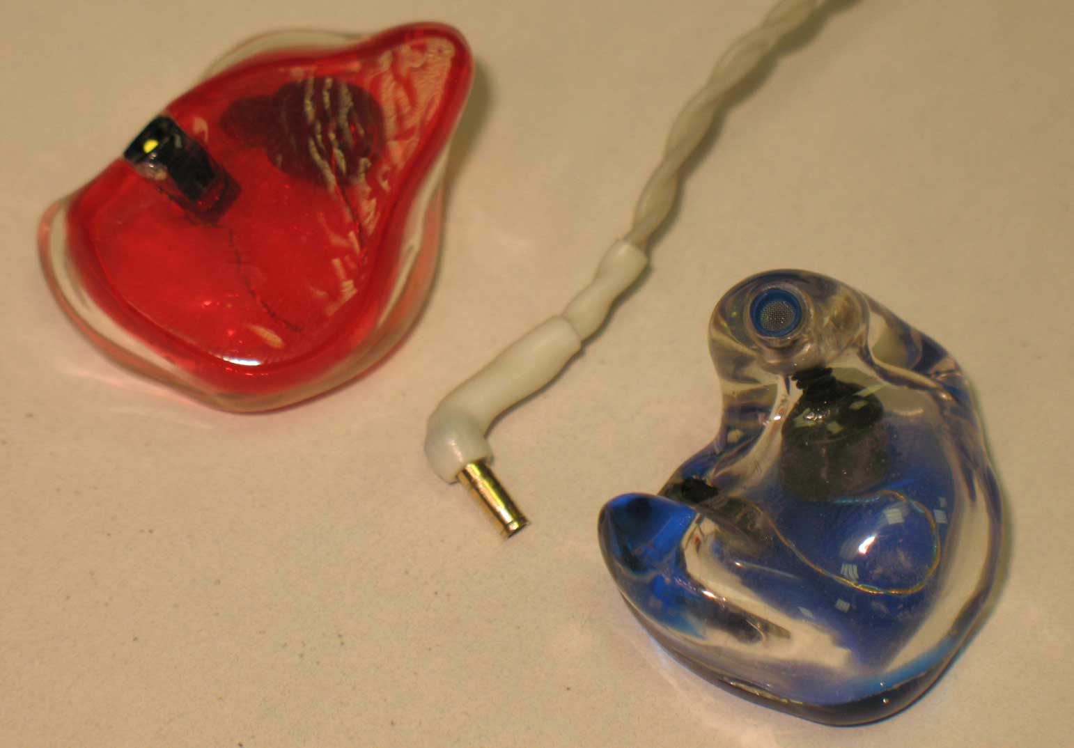 Кстати - если не заметили. Вроде как нашли в России разъемы аналогичные Sleek Audio SA6. Разве что "мама" - квадратный, но это не проблема. Так что теперь мы можем делать кастомы из любых драйверов со съемным коаксиальным проводом. еще немного фоток Теперь хотел бы немного описать звучание этой модели в кастом - варианте. Уж очень оно мне понравилось. Комбинация с серыми фильтрами от фонака Источники [b]AleXmod и 1866 и, пока провода нет, в качестве "провода" будет Kleer W1[/b] Не сказал бы, что звучание какое-то уникальное, неповторимое, не имеющее аналогов в мире. Хотя... как посмотреть. Ведь то, что мне понравилось, это на самом деле не уникальность возможностей а скорее неповторимость сочетаний. Постараюсь объясниться. Помните, какое основное отличие Sleek Audio от остальной арматуры я указывал ранее? Прально - эти наушнички (кстати, и SA6 и SBA-CT) уникальны тем, что по характеру звучания находятся где-то между динамиками и арматурами. Не слишком резко и не слишком тяжело. Не вязко и не звонко... Где-то на линии между Инь и Ян. На такой волнистой линии, обозначающей ,что в мире нет ничего однозначного... . Что очень понравилось - полное отсутствие агрессии. Но без вялости и замыленности. Просто у них, как мне кажется НЕТ ВООБЩЕ типичного для любой арматуры всплеска на средних частотах. Я бы даже сказал (если судить по Carmina Burana) - серединка немного присажена ... (правда сейчас у менянет провода для Sleek - слушаю на беспроводном модуле - прям скажем для топовой аппаратуры не эталон:). Он явственно замыливает звук. если его хватает на 99% типовой аппаратыты (в нем стоит Вольфсон 8740), то для мультибитки и алексмода это конечно деградация и достаточно сильная.) Да и на самом деле моя запись Карла Орфа вообще достаточно специфична. Она слабая, в ней нет силы, и вообще почти отсутствует бас как таковой. До сих пор не могу понять - откуда она такая взялась? Может какой рип опять полубитый,... но фирменный при этом. Ладно - замнем, есть и другие мелодии. Так вот. Что ОЧЕНЬ понравилось - полное отсутствие агрессии. Легкая мягкость и даже я бы сказал "скука". Что классика, что металл, что попса - для них все едино. Что поразительно - даже старые Judas Prest и AC/DC и даже вялые старые записи Van Hallen(a) играют не так убого, как обычно. По крайней мере терпимо. Чисто, голос очень чистый и ясный. Правда на фоне вялого и мыльного баса (вспоминаем Kleer) и нижней середины... Но что я могу поделать - трудно достать качественные записи старого рока. Их все уже давно "ремастерили" до полной кастрации нафиг. Но не подумайте, что все так безоблачно, проблемы есть. Причем вытекающие, как обычно и бывает, из достоинств. Наушники не самые эталонные по разрешению. Все-таки не топовая арматура. Детализация, конечно же отстает от Sleek, Phonak, DAB02. Но - однозначно не хуже по разрешению чем любые динамические наушники. Посоревноваться могут разве что Re0. Да и то - Re0 агрессивнее и больше за счет этого кажутся более детальными. Хотя, может и не кажутся... провод достану - сравню. Вторая "проблема" скорее не проблема а именно особенность и именно такая за что эти наушники можно любить. У них на слух совершенно типовая для хороших динамиков частотка и манера. С легким провалом по середине (что увеличивает кажущуюся сцену, за счет удаления вокалов) и чуть вздернутой верхушкой (которая увеличивает кажущуюся детализацию и .. опять же сцену). Делает она это НИЧУТЬ 