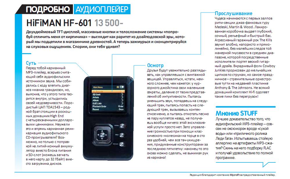 Статейка о HifiMan HM602 в журнале "Большой Город"