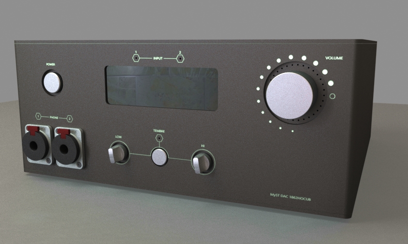 ![]() Приступим. Итак, прошло время, причем весьма не малое, как мы собрали прототип обновленного усилителя для наушников. Вторую версию: HiAMP-II. Давно пора было по нему отписаться, да все не понимал - надо ли. Так как на продажу его нет и пока не планируется. Почему не планируется? Ну, не смотря на его очевидные плюсы, о коих ниже, сами по себе усилители у нас очень слабо идут. Конечно, у нас раньше и не было "ультимативного" усилителя, который сгодился бы для всей линейки наших наушников. Первая версия HiAmp в народе считается "не достаточной" для таких моделей как MyST IzoPhones-60 или MyST Ortophones. Хотя, если честно, чисто по цифрам она впритык, но годится даже для Ortophones. Но, видимо подкачало именно это "впритык" - на предельных режимах ему работать было тяжеловато и на слух многие это отмечают. Кто знает, поэтому или нет, но именно усилители у нас не самый ходовой товар, гораздо более востребованы комбайны. Поэтому принято было решение, что усилитель сам по себе у нас будет только один - тот самый образец который мы тестируем на данный момент в офисе. Впрочем, обновляя комбайн, мы планируем сделать так, что при желании из него можно вынуть ЦАПовую часть и по сути, не меняя передней панели получить просто усилитель. Итак, учитывая предпосылки - нехватку мощности - как того и следовало ожидать, усилительную часть мы решили немного прокачать; нам требовался аппарат который будет гарантировано "тянуть" всю линейку наших (а заодно и не наших, типа Susvara, HE6 и других "тугодумов") наушников. Долго думать смысла не было - HiAmp сам по себе великолепный усилок - популярность стационаров OCU тому лишнее доказательство. Не хватало ему только мощи. Решение было простым - сменить корпус, добавить мощности, питания и .. оставить все остальное как было :). Что и было сделано. Сейчас в усилителе стоят торы на 50 Вольт размаха и 10 Ватт на выходе (на канал). Конечно, были еще всякие там мелочевки, допилы, оптимизации. Но я в этом как свинья в ананасах, поэтому даже не буду пытаться объяснять. Для простоты считаем - изменилась только мощность. Корпус, для нового комбайна (а заодно и для усилителя) решили сделать свой. Покупные стали уже не сильно то дешевле чем изготавливаемые на заказ, да и вообще, захотелось больше индивидуализма. Примерные дизайны уже сделаны (см. рендеры ниже) и начата отработка образца. По звуку А пока ждем новый корпус для будущих стационаров, давайте пробежимся по акустическим возможностям. Усилитель у нас на руках уже весьма долгое время, и послушать на нем удалось не только свою продукцию, но так же и приносимую злодеями-друзьями. Носят тут, понимаешь, всякое, а ты слушай... Вообще чрезвычайно интересно было послушать на нем такие вещи как MrSpeakers Ether-C Flow и Focal Clear Pro. И то ли так совпало, то ли усилок и правда волшебный, но обе модели попали в рейтинг как чрезвычайно рекомендуемые. Ну или я теряю хватку злостного черного пиарщика! В общем время прошло не мало, и уже начата работа над обновленным стационаром, так что пора отписаться по усилителю. Хотя, именно по звуку много написать не получится. Практически все что уже было сказано про первую версию, вполне можно транслировать на вторую, с той лишь разницей, что исчезло ограничение на особо привередливые модели. Но, писать придется, это же пиар, все-таки. Усилитель все так же универсален и по-хорошему "безвкусен". Как сказано было в муль